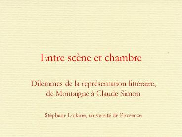 Montaigne à Claude Simon - Stéphane Lojkine, université de Provence
