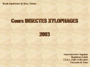 Cours INSECTES XYLOPHAGES 2003