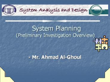<Notice: Removed> System Planning (Preliminary Investigation Overview) PowerPoint PPT Presentation