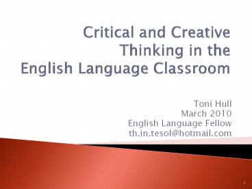 <Notice: Removed> Critical and Creative Thinking in the English Language Classroom PowerPoint PPT Presentation