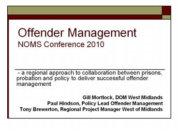 <Notice: Removed> Offender Management NOMS Conference 2010 PowerPoint PPT Presentation