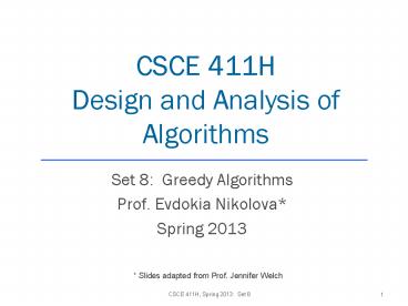 <Notice: Removed> CSCE 411H Design and Analysis of Algorithms PowerPoint PPT Presentation
