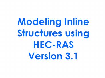Title: Modeling Inline Structures using HEC-RAS Version 3.1