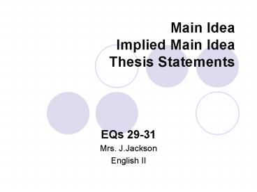 Main Idea Implied Main Idea Thesis Statements PowerPoint PPT Presentation