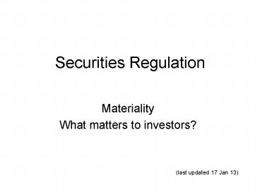 <Notice: Removed> Securities Regulation PowerPoint PPT Presentation