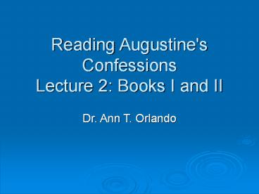 Title: Reading Augustine's Confessions Lecture 2: Books I and II