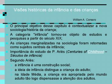 retomadas como sujeitos centrais da infância - Importância do estudo de P. Ariès (Centuries of