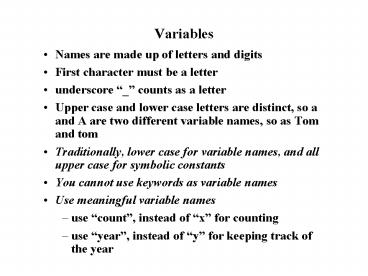 - Upper case and lower case letters are distinct,