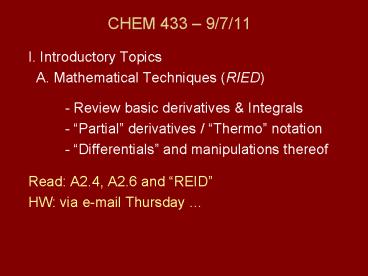 CHEM 433 9/7/11