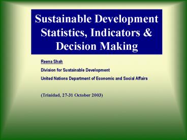 Title: Sustainable Development Statistics, Indicators