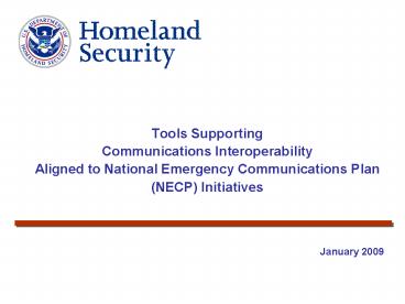 Tools Supporting Communications Interoperability Aligned to National Emergency Communications Plan (NECP) Initiatives January 2009 Purpose of Tools Governance and ... – PowerPoint PPT presentation
