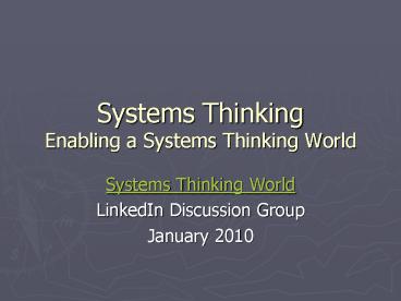 <Notice: Removed> Systems Thinking Enabling a Systems Thinking World PowerPoint PPT Presentation