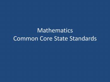<Notice: Removed> Mathematics Common Core State Standards PowerPoint PPT Presentation