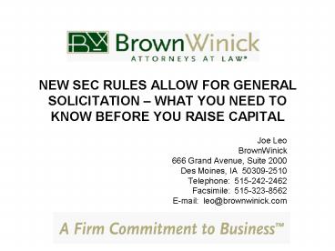 <Notice: Removed> NEW SEC RULES ALLOW FOR GENERAL SOLICITATION PowerPoint PPT Presentation