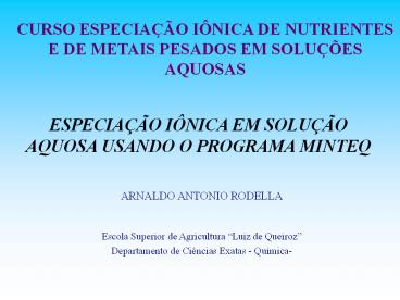 1CURSO ESPECIAÇÃO IÔNICA DE NUTRIENTES E DE METAIS