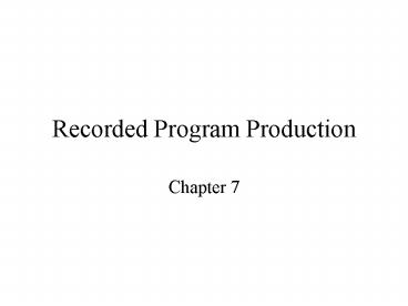 <Notice: Removed> Recorded Program Production PowerPoint PPT Presentation