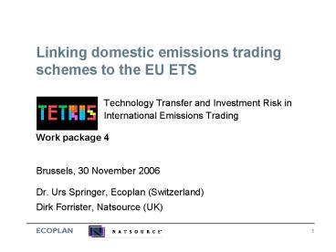 <Notice: Removed> Linking domestic emissions trading schemes to the EU ETS PowerPoint PPT Presentation