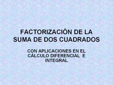 FACTORIZACIÓN DE LA SUMA DE DOS CUADRADOS