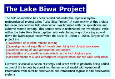 1The Lake Biwa Project