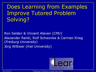 <Notice: Removed> Does Learning from Examples Improve Tutored Problem Solving? PowerPoint PPT Presentation