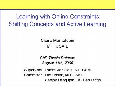 <Notice: Removed> Learning with Online Constraints: PowerPoint PPT Presentation