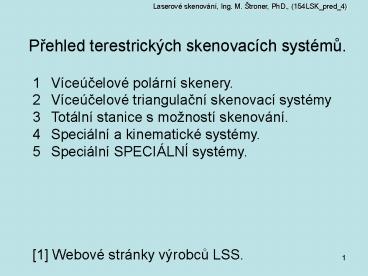 1Laserové skenování, Ing. M. Štroner, PhD.,