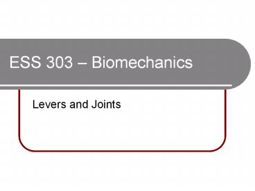 ESS 303 Biomechanics