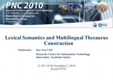 <Notice: Removed> Lexical Semantics and Multilingual Thesaurus Construction PowerPoint PPT Presentation