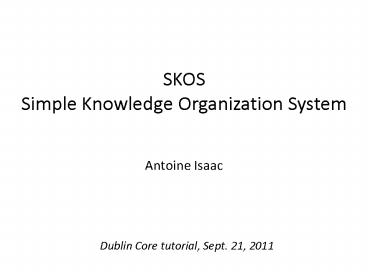 <Notice: Removed> SKOS Simple Knowledge Organization System PowerPoint PPT Presentation