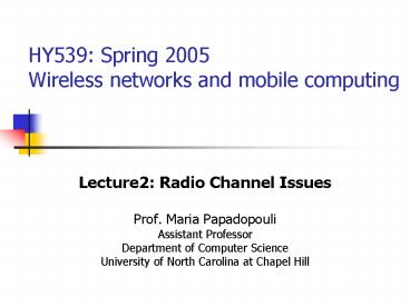 <Notice: Removed> HY539: Spring 2005 Wireless networks and mobile computing PowerPoint PPT Presentation