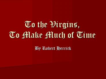 <Notice: Removed> To the Virgins, To Make Much of Time PowerPoint PPT Presentation