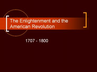 The Enlightenment and the American Revolution PowerPoint PPT Presentation