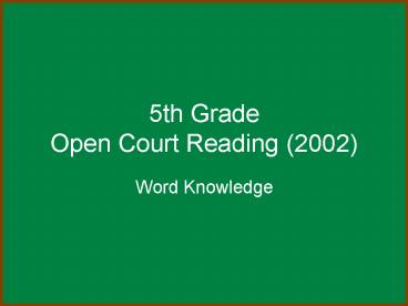 5th Grade Open Court Reading (2002) PowerPoint PPT Presentation