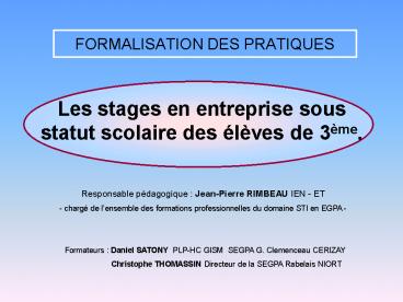 <Notice: Removed> FORMALISATION DES PRATIQUES PowerPoint PPT Presentation