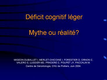 (DSM IV,1994), déclin cognitif lié à lâge .