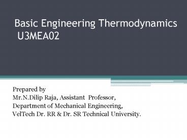 Basic Engineering Thermodynamics U3MEA02 PowerPoint PPT Presentation