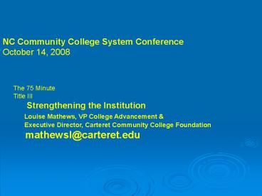<Notice: Removed> NC Community College System Conference PowerPoint PPT Presentation