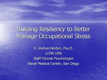 Building Resiliency to Better Manage Occupational Stress PowerPoint PPT Presentation