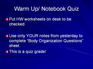 <Notice: Removed> Warm Up/ Notebook Quiz PowerPoint PPT Presentation