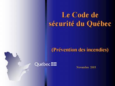 1Le Code de sécurité du Québec(Prévention des
