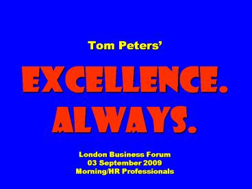 1 Tom Peters EXCELLENCE. ALWAYS.London