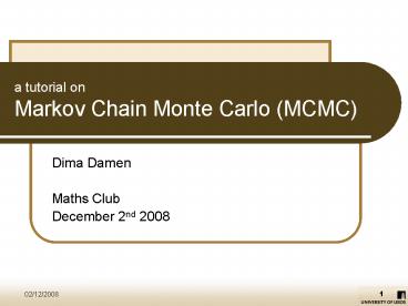 <Notice: Removed> a tutorial on Markov Chain Monte Carlo (MCMC) PowerPoint PPT Presentation