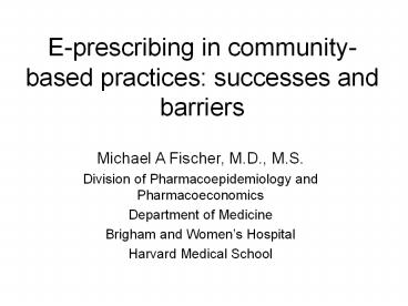 Title: E-prescribing in community-based practices: successes and barriers