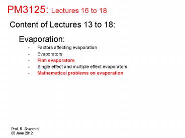 Title: PM3125: Lectures 16 to 18