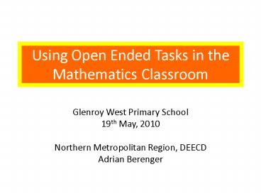 <Notice: Removed> Using Open Ended Tasks in the Mathematics Classroom PowerPoint PPT Presentation