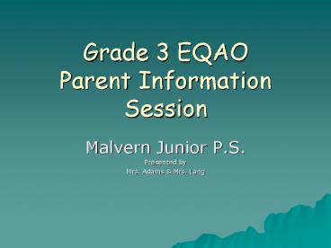 Title: Grade 3 EQAO Parent Information Session