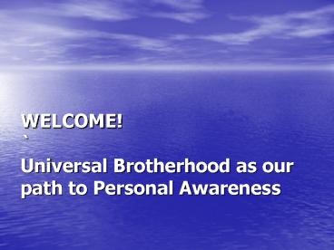 WELCOME! ` Universal Brotherhood as our path to Personal Awareness PowerPoint PPT Presentation