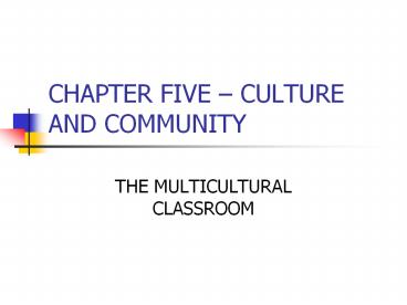 CHAPTER FIVE CULTURE AND COMMUNITY