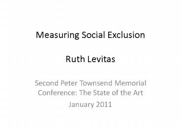 <Notice: Removed> Measuring Social Exclusion Ruth Levitas PowerPoint PPT Presentation