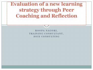 dialogic approach to development - Formative Evaluation- A peer coaching program